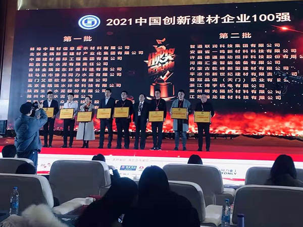 2020年11月6日,公司董事長臧明光先生受邀赴合肥參加中國建筑材料企業(yè)管理協(xié)會舉辦的中國建材企業(yè)發(fā)展論壇,暨中國建材企業(yè)500強(qiáng)系列活動發(fā)布會。我公司被評選為''2020中國建材服務(wù)業(yè)100強(qiáng)''之一。感謝協(xié)會對我們的支持和青睞,我公司會繼續(xù)努力,創(chuàng)造更好的成績。